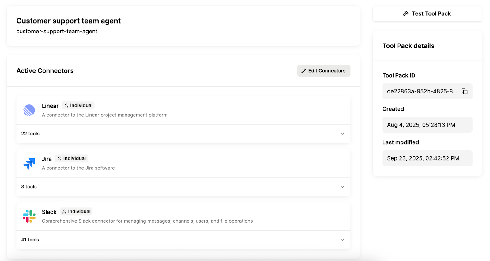 For example, if you’re building a customer support agent, you can give it access to a set of connectors and tools that allow it to identify product bugs (e.g., in Linear), create and update issues (e.g., in Jira) and deliver updates to the relevant stakeholders (e.g., in Slack).