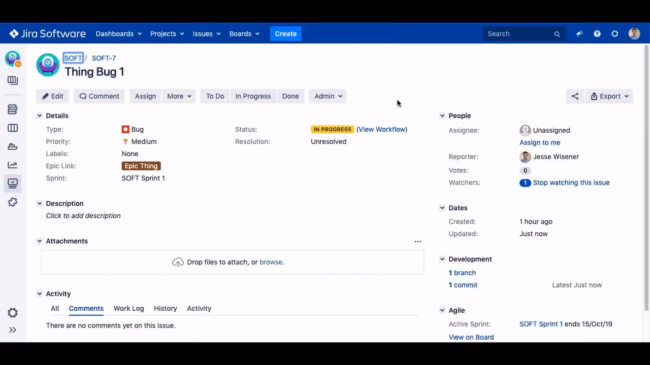 Integrations with SCM and CI/CD tools makes it easy to tie together tickets with important software development objects such as code branches, commit messages, pull requests, builds, and deployments.