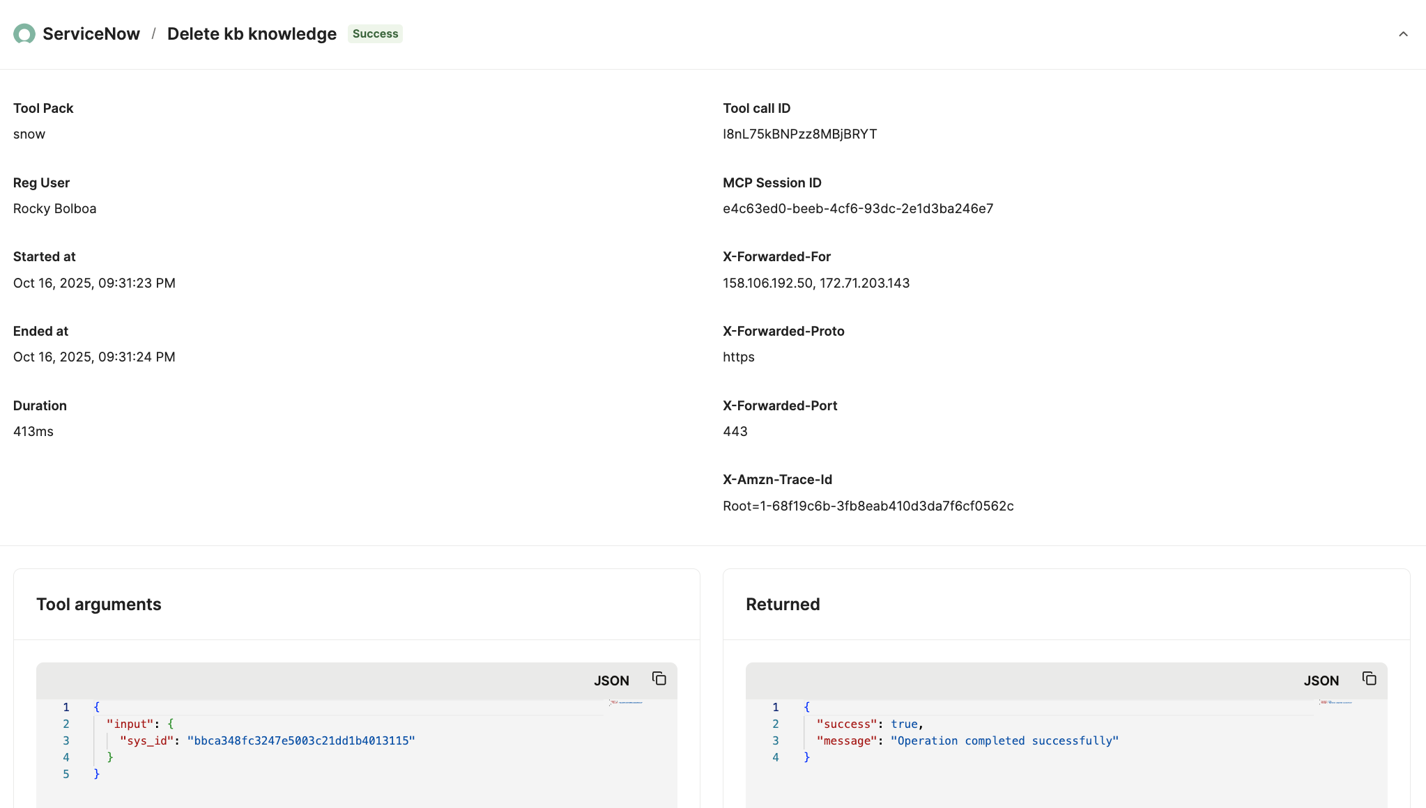 - Fully-searchable logs: Each log should show the MCP server that was used, the specific tool(s) that was called, the user or system that triggered the tool call, the date of the tool call, and how long the tool call lasted end to end