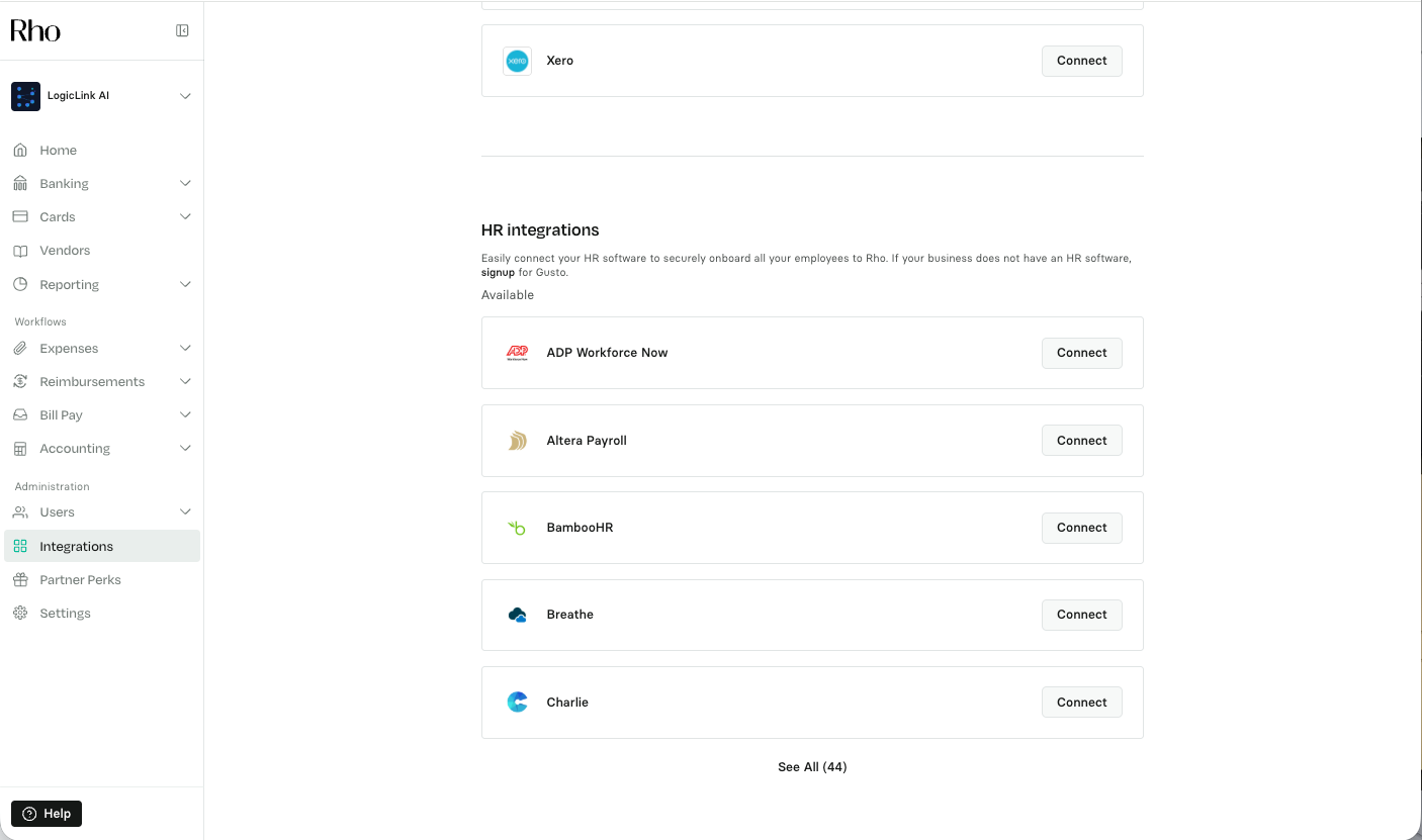 Rho has been able to offer a dramatically wider set of HR integrations without investing in dedicated integration engineers.